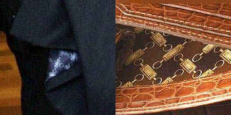 На обратной стороне костюма Президента переливалась цветная подкладка с узором-логотипом, характерным для французского ателье "Zilli". Так стало ясно, какие именно костюмы носит Виктор Андреевич.