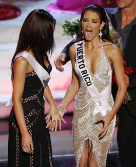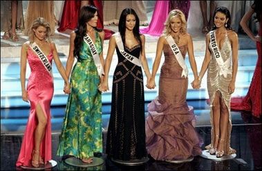 Победительница с мисс Вселенная-2005 канадкой Наталией Глебовой и организатором конкурса миллиардером Дональдом Трампом.