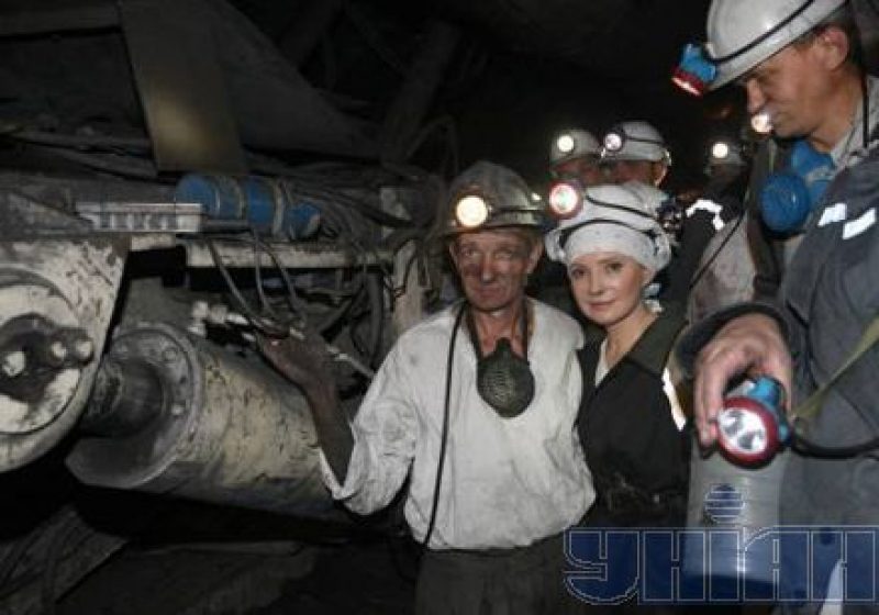 Премьер-министр Украины Юлия Тимошенко во время визита на шахту им. Фрунзе в Ровеньках (Луганская обл.).