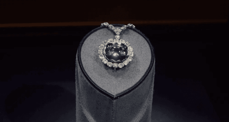 По данным Смитсоновского института, сегодня бриллиантовый кулон окружен 16 белыми бриллиантами и прикреплен к цепочке, украшенной 45 белыми бриллиантами. Несмотря на свое сходство с другим вымышленным бриллиантом - "Сердцем океана", который носила героиня Кейт Уинслет Роуз ДеВитт Букейтер в фильме 1997 года "Титаник", - "Алмаз Хоуп" никогда не плавал на роковом корабле.