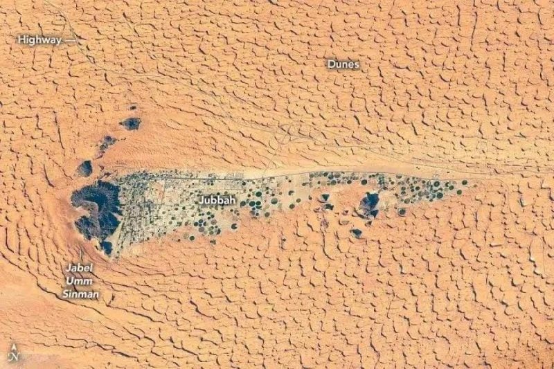Интересно, что ландшафт Джуббы запечатлел момент в истории планеты, когда Аравийский полуостров был гораздо зеленее, чем сегодня. По мере изменения климатических условий и распространения опустынивания большинство пресноводных озер региона исчезли.