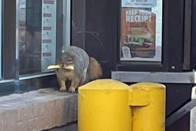Белку он заметил, пока стоял в очереди машин в ожидании своего заказа. Это показалось ему странным, пока из окошка не высунулась рука с ломтиком жареной картошки.