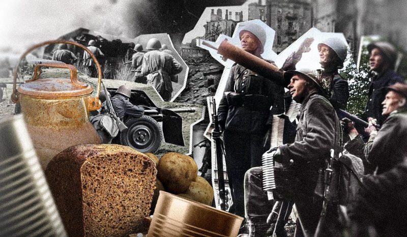 Основу их питания составляли разные крупы, тушенка, макароны, хлеб, картошка, соль и сахар. Рыба в рационе появлялась только тогда, когда фронт был возле моря. В остальных случаях употребляли мясо.