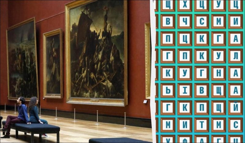 На коллаже, который вы увидите ниже, в произвольном порядке расположены десятки различных букв. Среди них спрятано слово "картина", которое вам нужно будет отыскать.