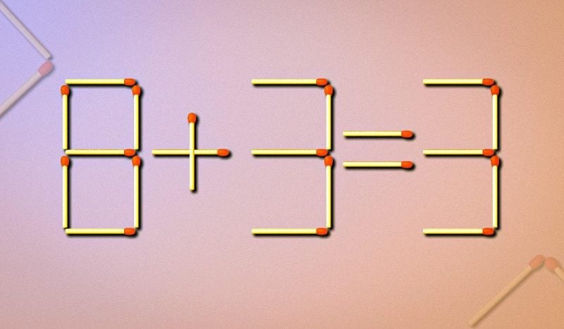 На изображении ниже вы увидите равенство 8+3=3, выложенное с помощью спичек. В нем есть ошибка, которую вам нужно исправить.
