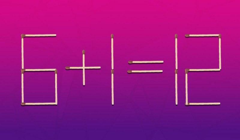 Итак, ниже вы увидите коллаж, где с помощью спичек выложено равенство 6+1=12. Очевидно, что здесь есть ошибка, ведь сумма этих чисел равна 7.