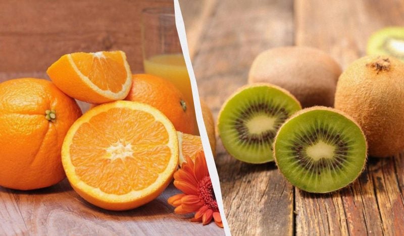 И киви, и апельсины отличные источники витамина С. Хотя один средний апельсин содержит больше витамина С, чем один средний киви, но в пересчете на грамм киви содержат больше витамина С.