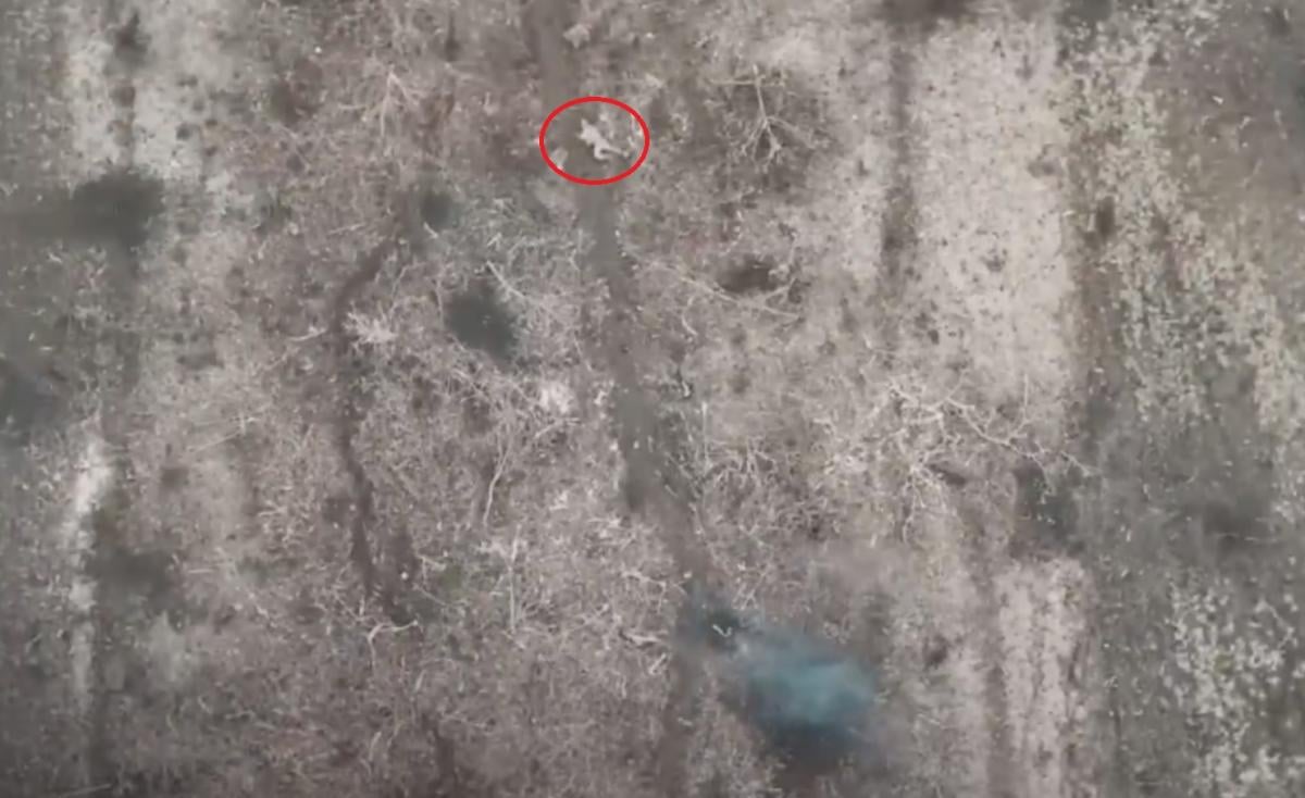 На опубликованном военными ВСУ видео видно, как захватчик сначала притворился мертвым - какое-то время просто лежал на земле, не двигаясь. Однако это не спасло его от удара дроном.