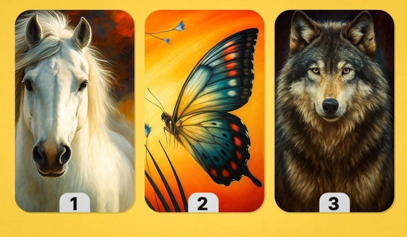 На картинке изображены лошадь, бабочка и волк. Посмотрите на три изображения, их цвета и визуальный стиль. Подумайте, какое из них лучше всего отображает ваше внутреннее состояние на данный момент. На основе выбора вам будет дан полезный жизненный совет.