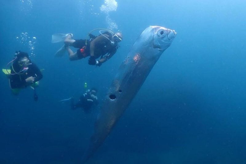 Морские биологи подтвердили, что это – молодая особь короля лосося – ленточной рыбы, которая обычно обитает на глубинах до 900 метров. Как рассказал Джуди, рыба появилась буквально через несколько секунд после того, как он погрузился в воду.