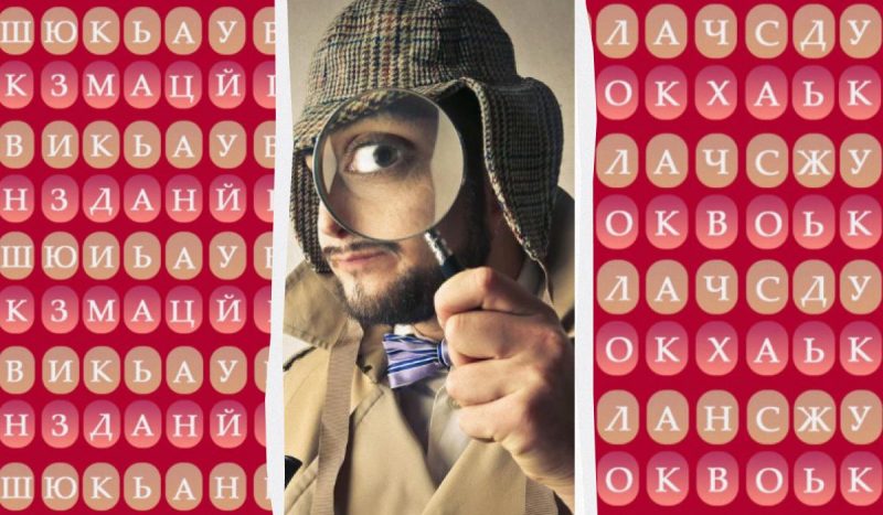 Если готовы еще раз проверить свои "детективные" навыки, то попробуйте очень быстро заметить имя "Олег" среди множества букв, расположенных блоками.