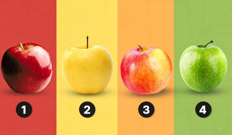 Это один из самых простых методов проверки своей сообразительности. Вам нужно довериться собственной интуиции, не думать долго, а действовать по наитию. Подсознание укажет вам правильный путь, и вы сможете быстро пройти такой психологический тест на душевное состояние и уровень интеллекта. Какое яблоко кажется вам наиболее привлекательным?