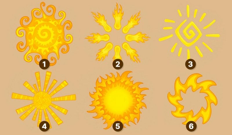 Перед вами шесть изображений, на которых показано солнце в разных стилях. Подумайте, какое из них лучше всего вас описывает. Выбирайте не умом, а сердцем, и тогда ответ будет искренним.