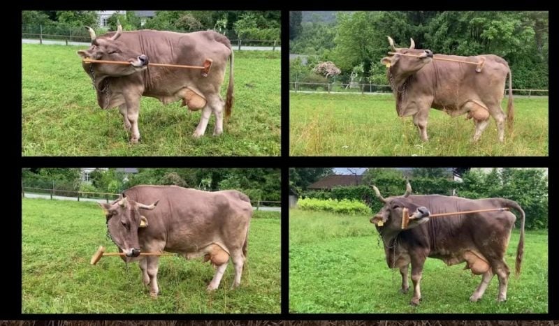 На одной из ферм Австрии живет корова по имени Вероника, и она может пользоваться инструментами. Причем не хуже многих животных, которые имеют полноценные передние лапы.
