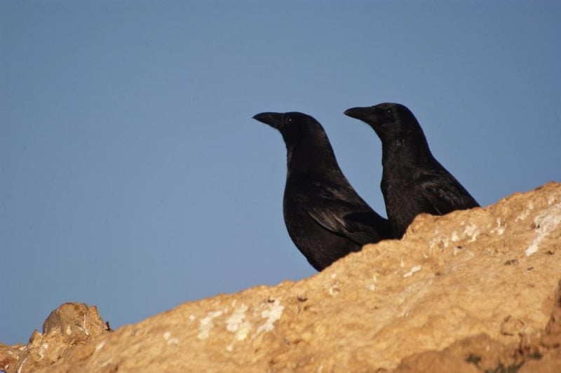 Обе птицы крепкие, блестящие, угольно-черные – пожалуй, их сложнее всего различить. Если ворона полностью черная и с полностью оперенной головой, это почти наверняка ворон.