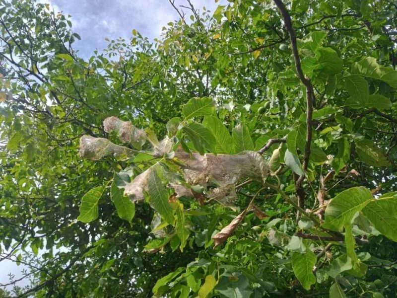 Под угрозой такие растения как яблоня, груша, шелковица, слива, орех, вишня, сирень, клен, а также другие плодовые и декоративные насаждения. Гусеница объедает листья деревьев до полного уничтожения зеленой массы.