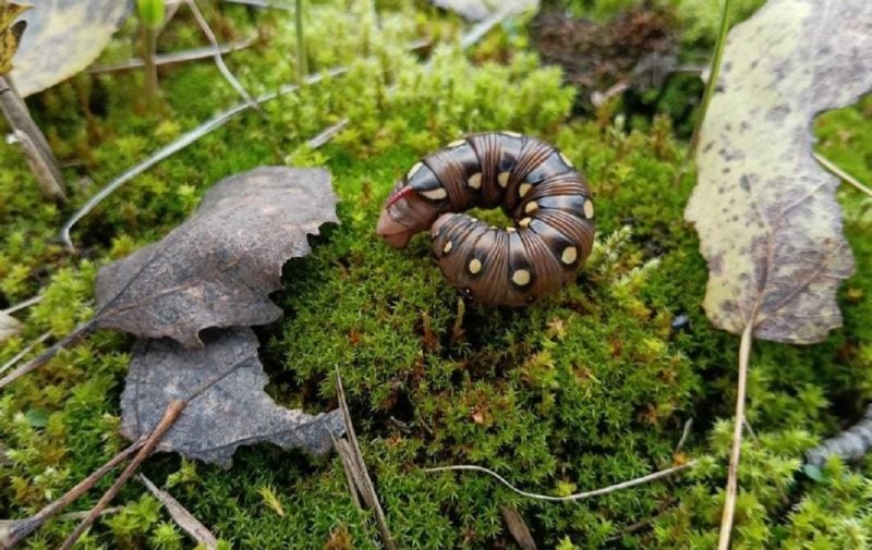 В заповеднике подчеркнули, что гусеница этого вида - настоящее украшение лесных полян. Она большая, мясистая, длиной до 8 см. Окраска может быть разной: от ярко-зеленой до темно-бурой или почти черной. Вдоль тела заметны светлые пятна, а на конце - характерный рог, который выглядит угрожающе, но является вполне безопасным.