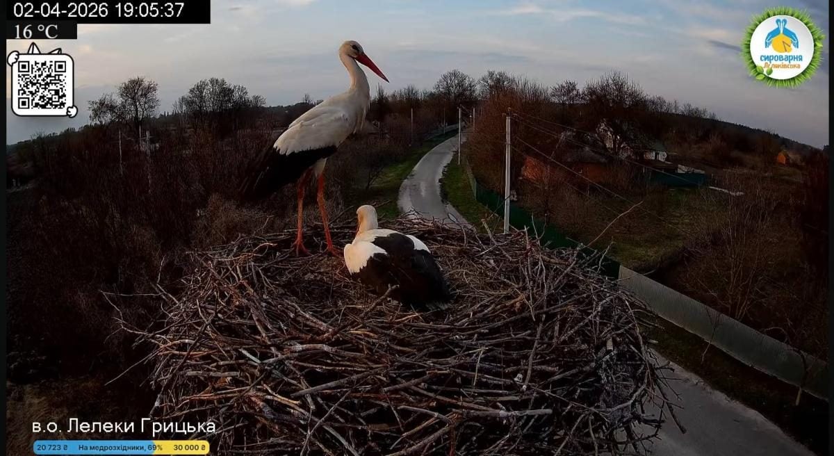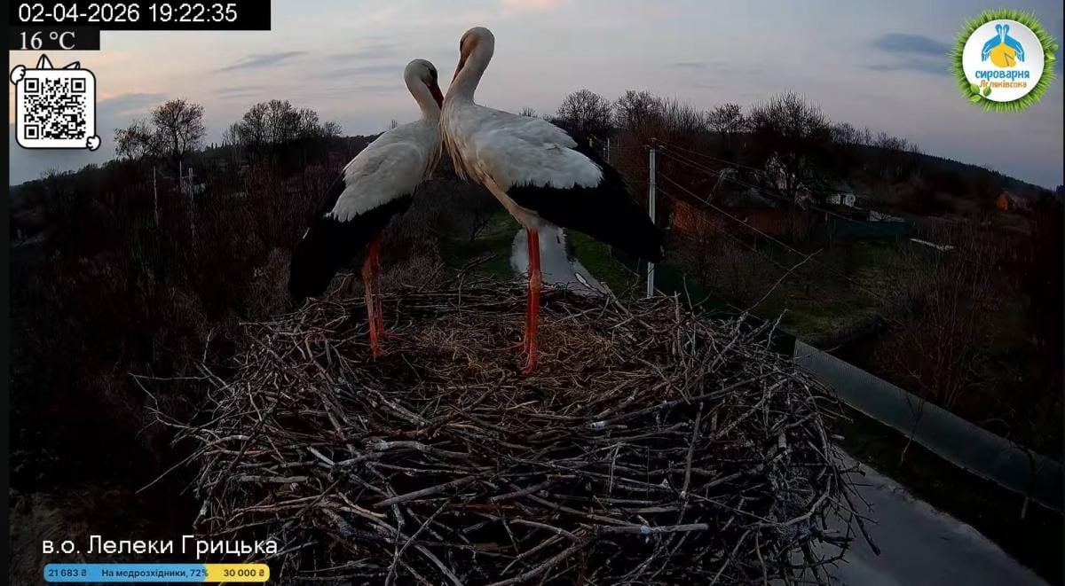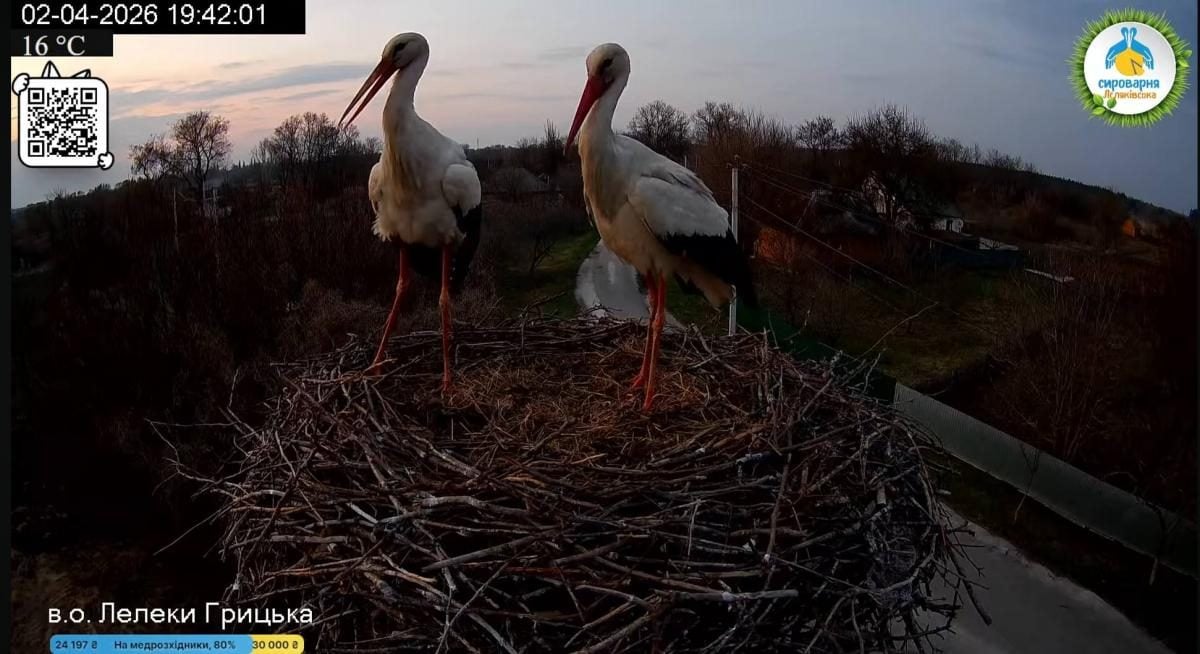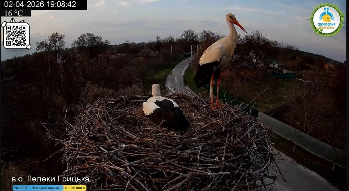 Уже 22 марта 2026 года в Национальный природный парк "Пирятинский" на Полтавщине прилетел первый аист, но это был не Грицик и не Одарка. Этот аист провел в гнезде полторы минуты, переложил веточку и улетел куда-то дальше.