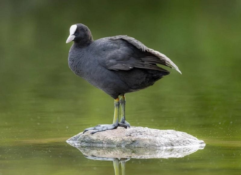 Лысуха обыкновенная (Fulica atra) – небольшая водоплавающая птица семейства пастушковых. Распространена в Европе, Азии, Австралии, Новой Зеландии и некоторых районах Северной Африки. Имеет черно-сырецовое тело, блестящую черную голову и белый клюв с белым лобным щитком. В Украине гнездовая, перелетная, зимующая птица. Имеет длину 36-38 см и размах крыльев 70-80 см. Вес самцов составляет около 890 г, а самок – 750 г.