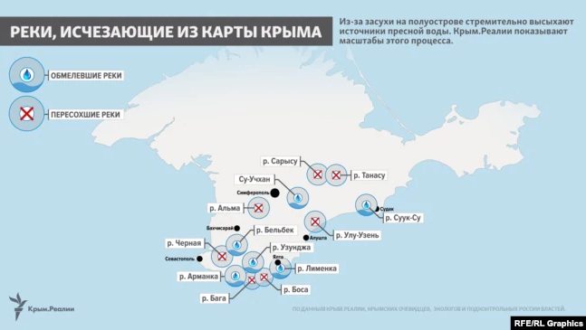 Журналисты подсчитали, что почти за год в оккупированном Крыму исчезли как минимум около десятка рек. Многие другие водоемы тоже истощены.