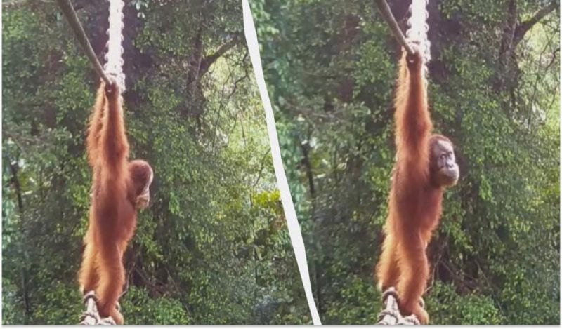 Молодой самец осторожно двигался по конструкции, остановился на полпути, оглянулся и только потом продолжил путь. Генеральный директор Суматранского общества орангутанов Хелен Бакленд эмоционально описала этот успех.