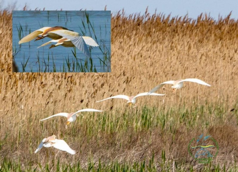"Желтая цапля (Ardeola ralloides) - одна из самых изящных и загадочных обитательниц наших водно-болотных угодий. Она является перелетной птицей и зимует в Африке, возвращаясь к нам обычно в апреле или в начале мая. Сейчас она пролетает через нацпарк "Тузловские лиманы" и другие водоемы Причерноморья", - объяснил Русев.
