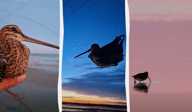 "Барашек обыкновенный на рассвете. Средняя по размеру болотная птица из семейства барашковых (Scolopacidae). Питается и днем и ночью на мелководьях в нацпарке "Тузловские лиманы". В сети научного лова куликов попадается редко. Специалисты сняли биологическую информацию, окольцевали и выпустили на волю", - рассказал Русев.