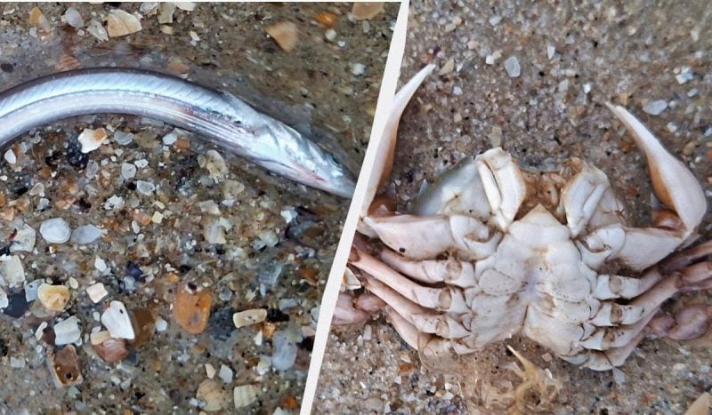 По его словам, Черное море в последние дни штормило и выбросило на побережье много морских организмов. Как отметил исследователь, обследовано 5 км пересыпи нацпарка и зафиксированы различные виды рыб, крабов.
