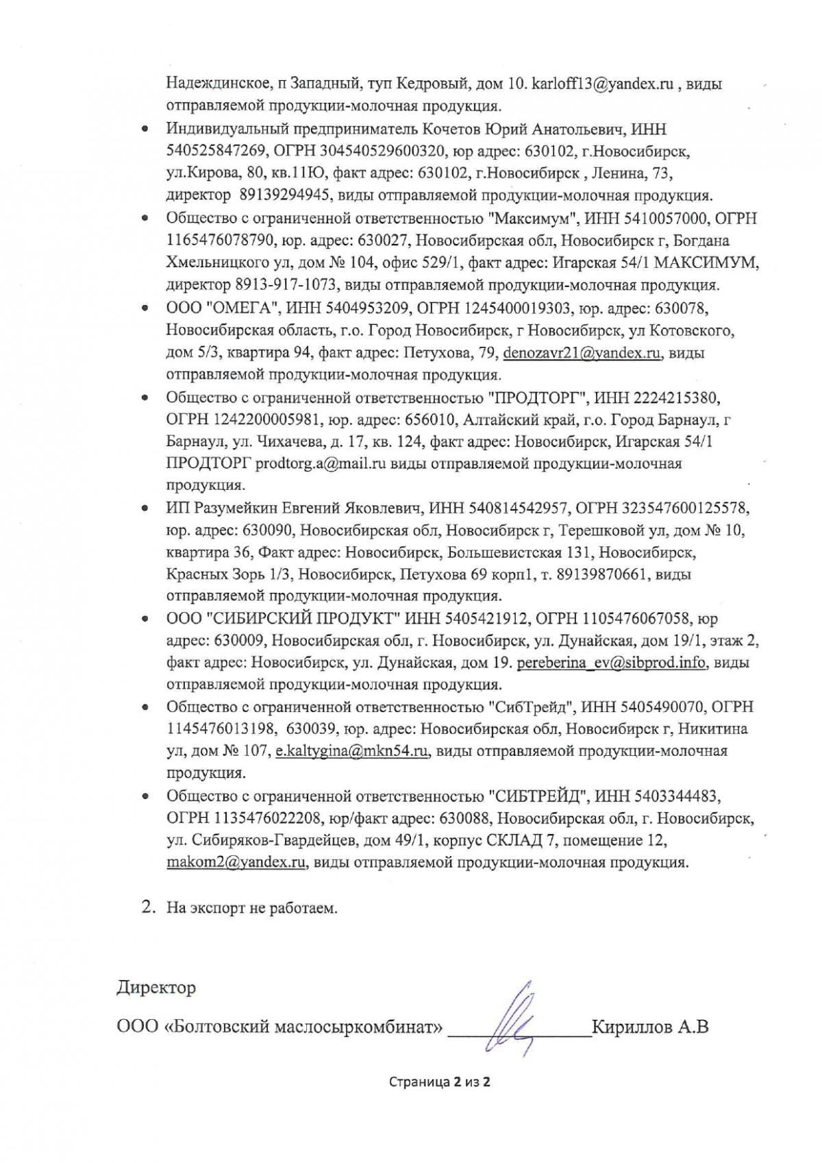 Другое крупное новосибирское предприятие – "Болтовский маслосыркомбинат" - за тот же период показало меньшую, но также широкую географию поставок: Алтайский край, Приморский край, Новосибирская область.