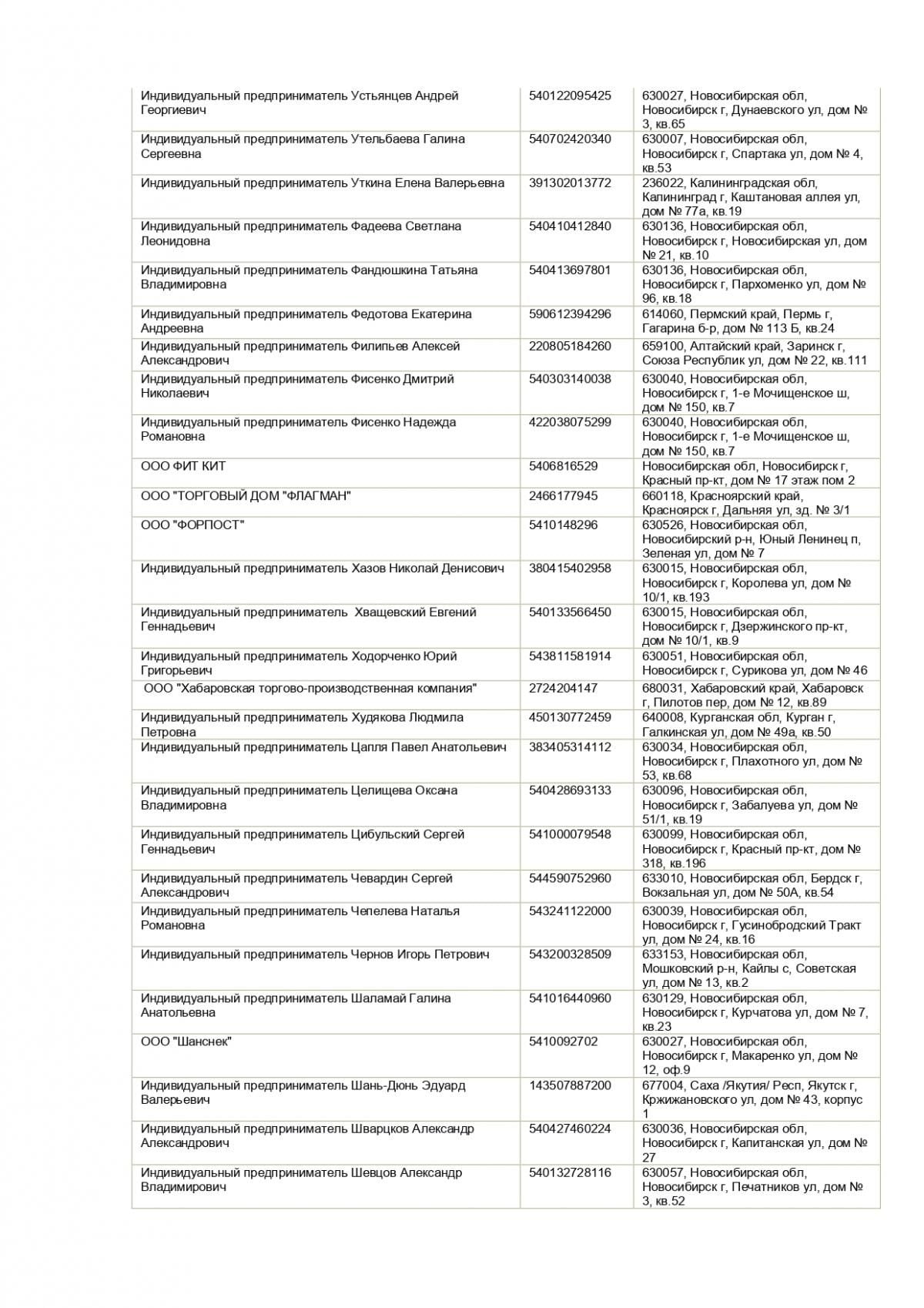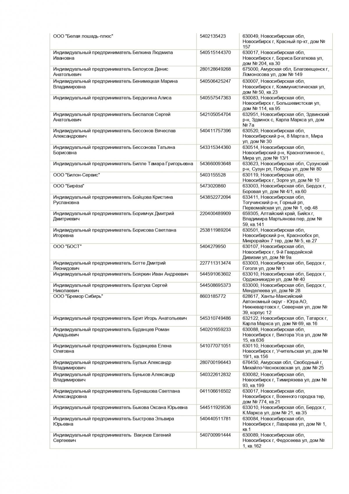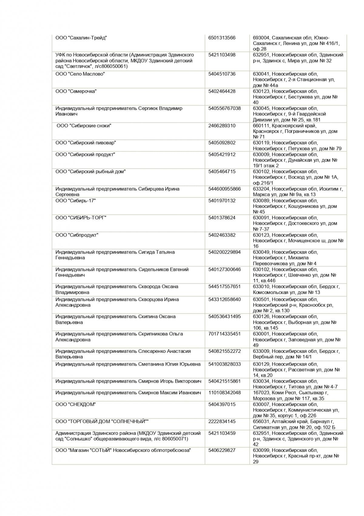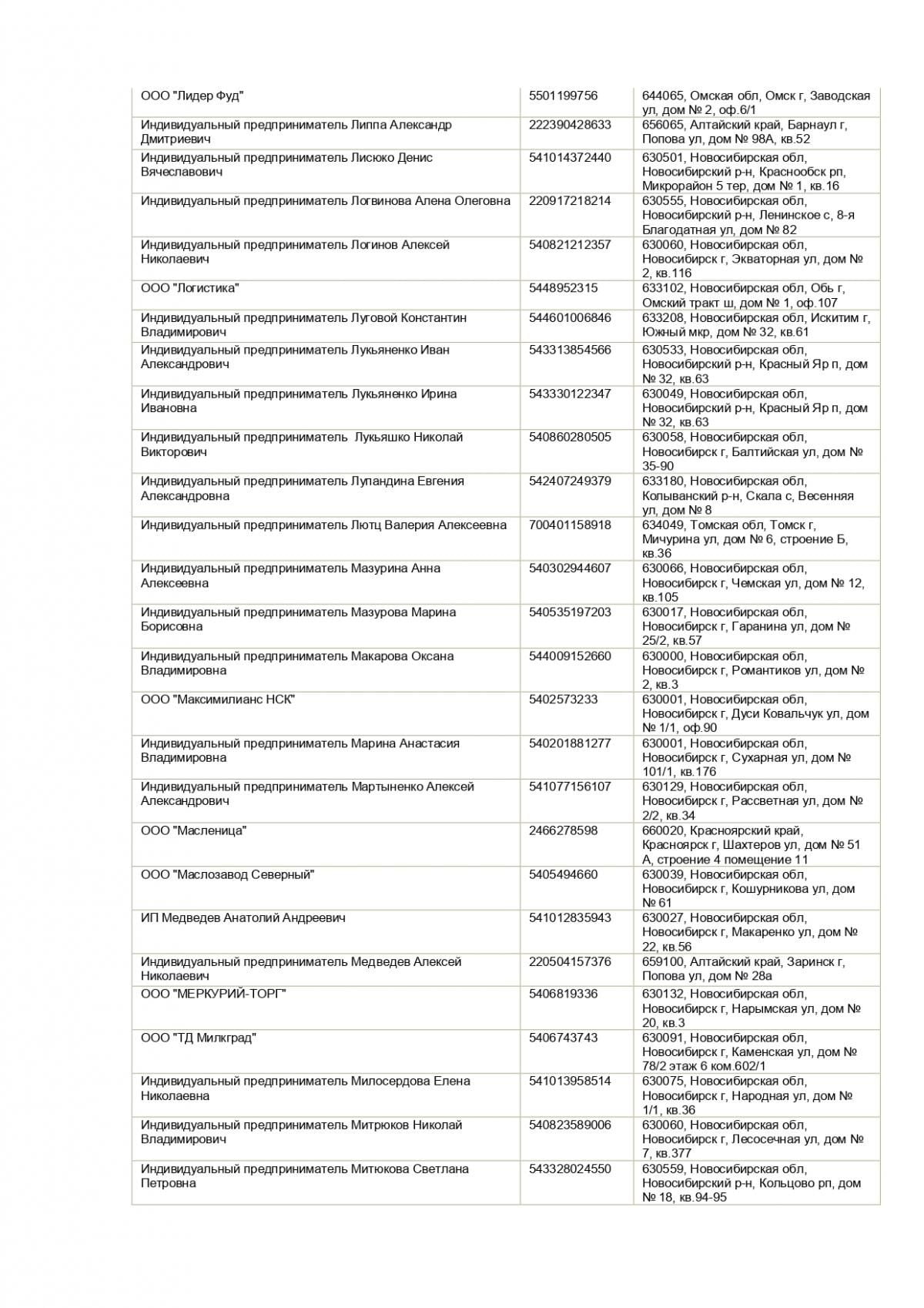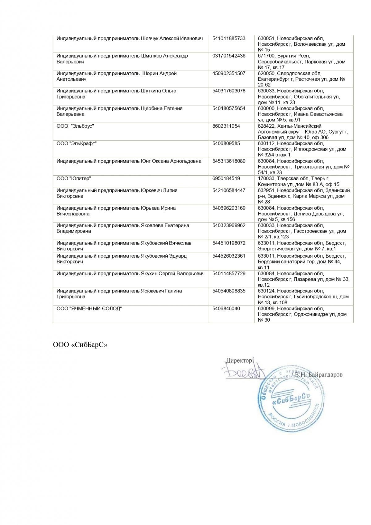 Но куда обширнее и интереснее список получателей у другого новосибирского аграрного гиганта – "СибБарс". Среди получателей продукции этого предприятия - компании и предприниматели по меньшей мере 24 российских регионов, а также Москвы и Санкт-Петербурга!