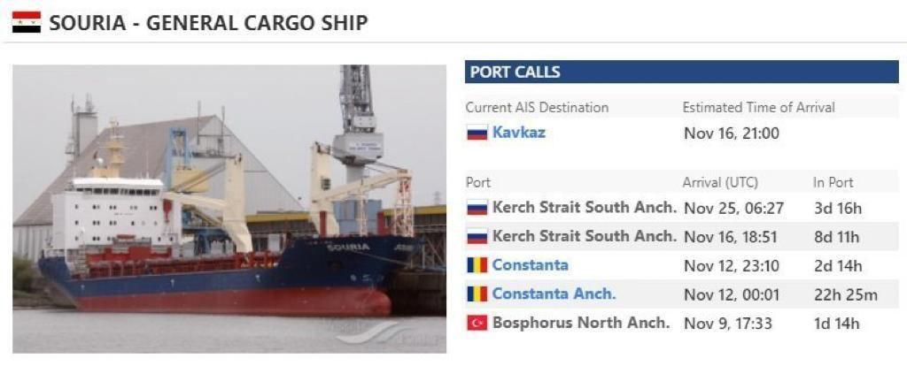Согласно системе слежения за судами, сирийское судно SOURIA с первой партией ильменита от чешской Belanto разгрузилось в порту Керчь, РФ 25 ноября.