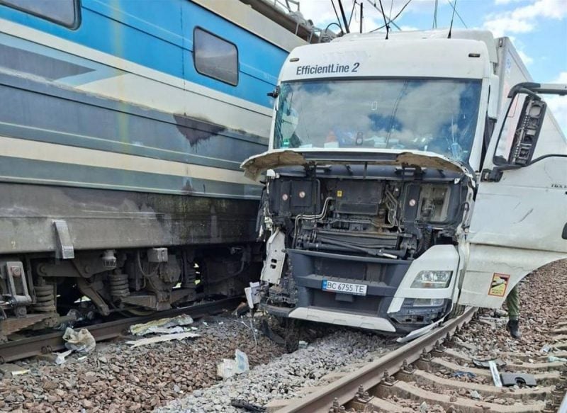 Отмечается, что грузовой автомобиль во Львовской области "не заметил" исправную звуковую и световую сигнализацию и столкнулся с локомотивом поезда №64 Перемышль – Киев.