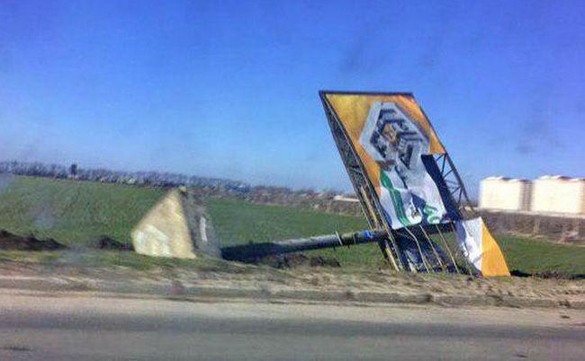 В общественной организации ОПОРА сообщили, что поврежденные билборды с агитацией Бойко и Тимошенко вечером 9 марта обнаружил наблюдатель организации на перекрестке улиц Мельницкая и Василия Стуса в Малиновском районе.