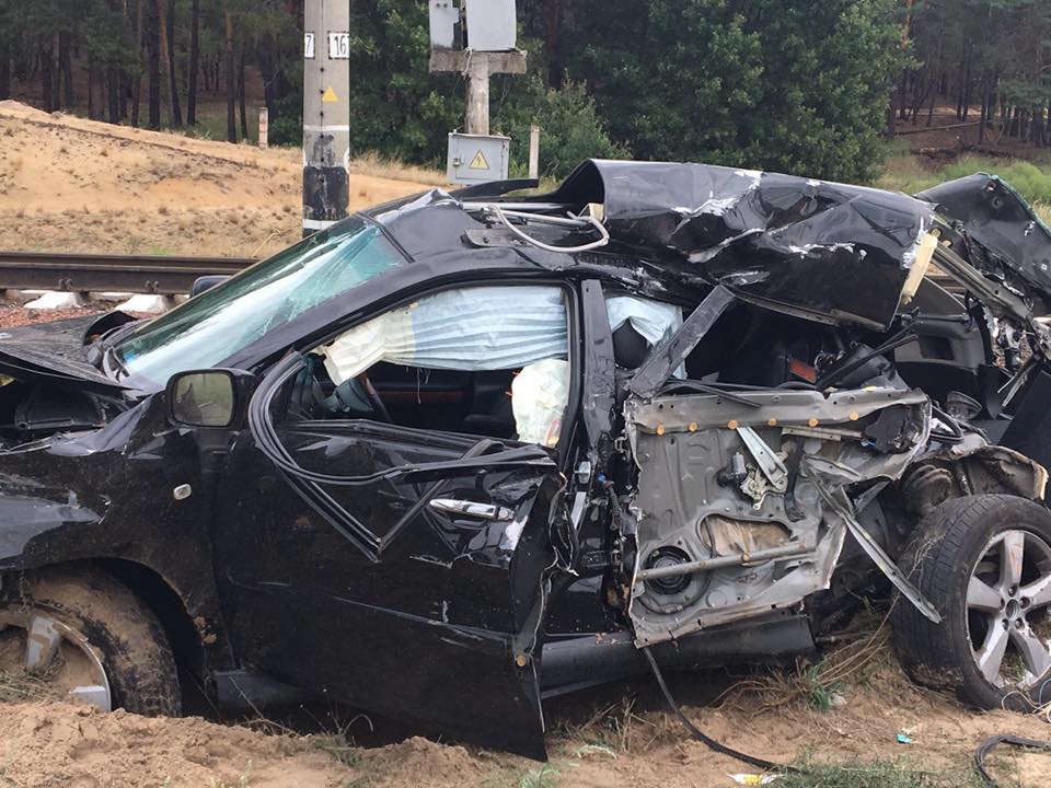 Водитель Lexus пытался переехать железнодорожный переезд, однако не успел, в него врезался поезд. Удар был такой силы, что машина превратилась в груду металлолома. Обошлось без жертв.