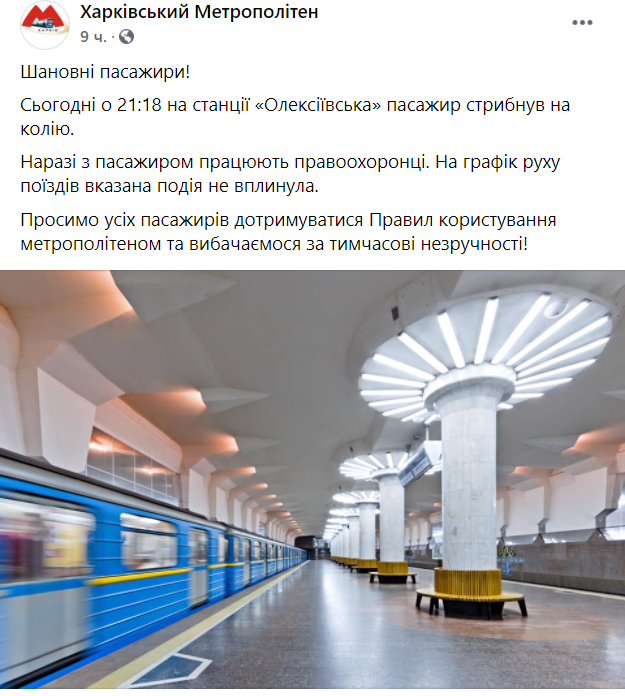 В пресс-службе КП "Харьковский метрополитен" сообщили, что инцидент произошел на станции "Алексеевская" в накануне в 21:18. На график движения поездов инцидент не повлиял.