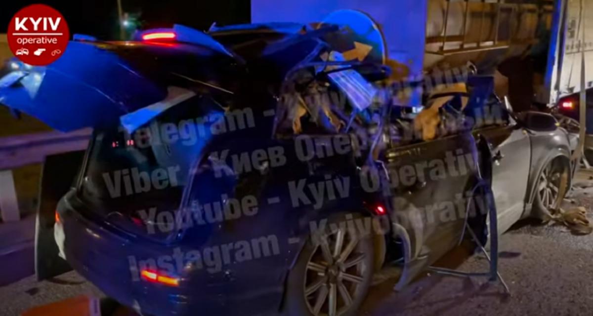 В то же время водитель "Audi" на скорости протаранил припаркованный на левой полосе грузовик с трубами. Как свидетельствуют отснятые кадры очевидцев, крышу автомобиля от удара разорвало, а передний бок расплющило. Пострадали также лобовое стекло и колеса.