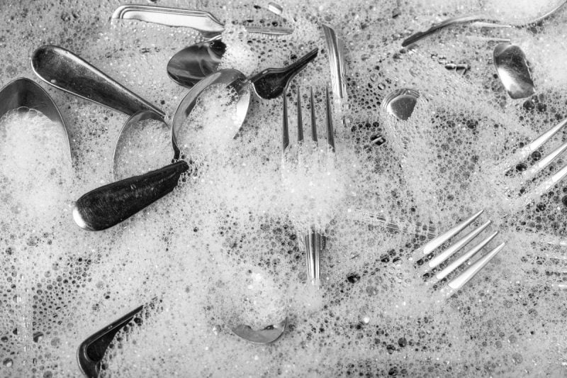 К счастью, существует простой и безопасный способ, как отмыть вилки между зубьями, а также ложки, ножи и прочие приборы: с помощью алюминиевой фольги, соды и горячей воды.
