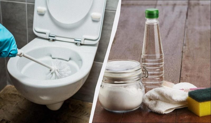 Уксус удаляет налет с унитаза не хуже дорогих магазинных средств.