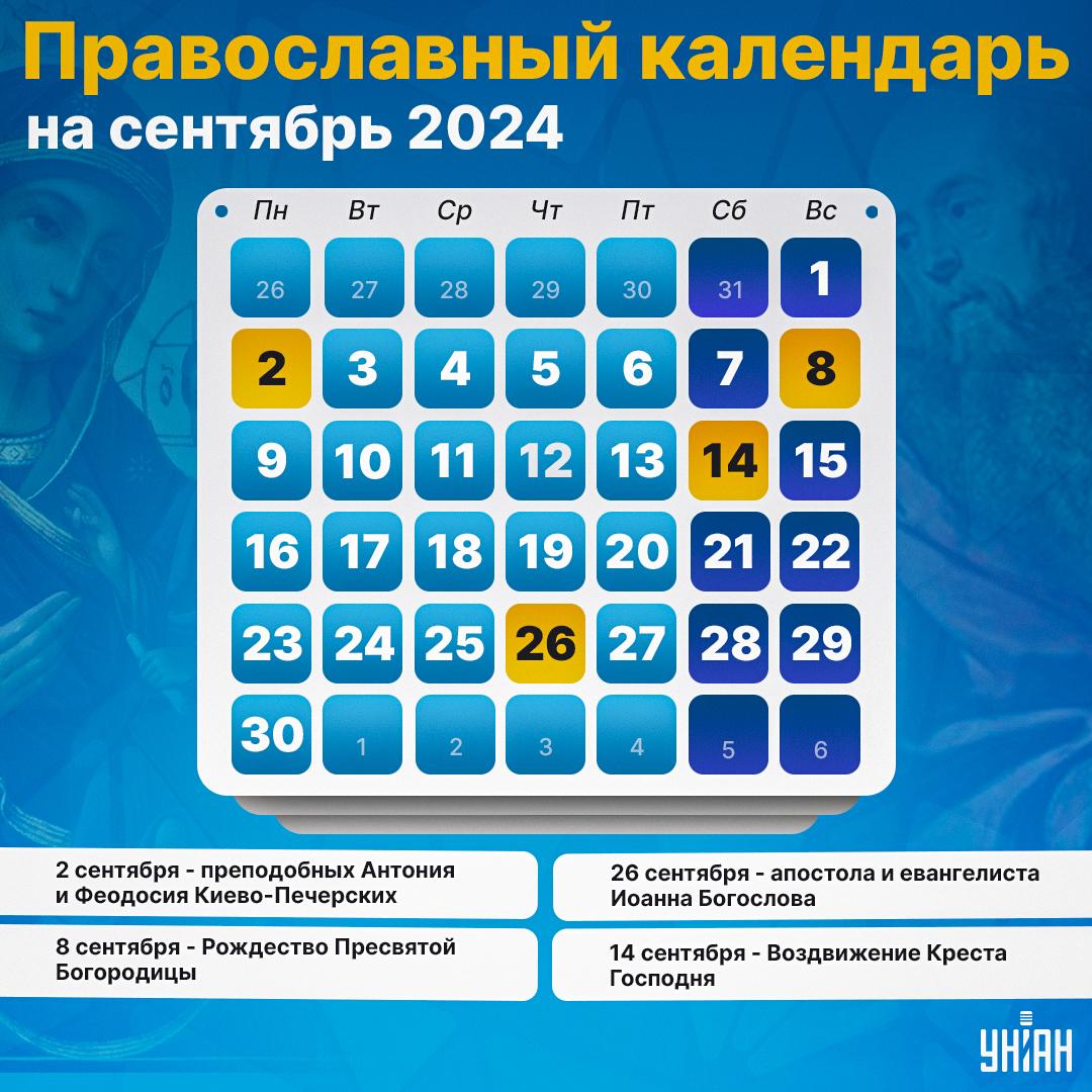 В сентябре в православном церковном календаре есть несколько больших праздников. Среди них - Рождество Пресвятой Богородицы, Воздвижение Креста Господня, день памяти преподобных Антония и Феодосия Киево-Печерских, а также апостола и евангелиста Иоанна Богослова, который отмечают в сентябре по новому стилю. Какие еще церковные даты будут в первом месяце осени по новому церковному календарю и какие - по старому стилю, рассказываем в материале.