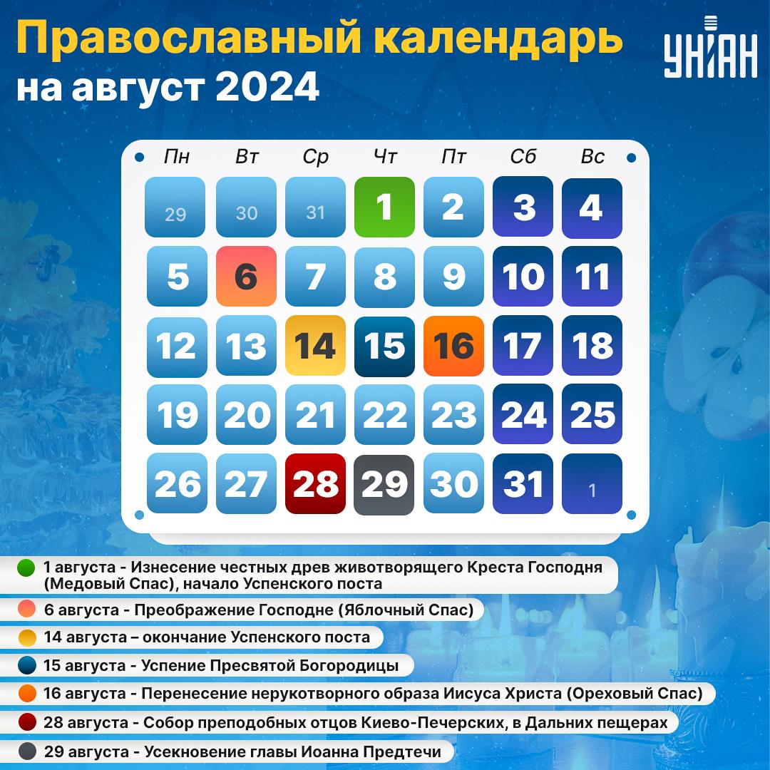 По новому стилю он начнется 1 августа и закончится 14 августа, накануне праздника Успение Пресвятой Богородицы. По старому церковному календарю Успенский пост начнется 14 августа и закончится 27 августа.
