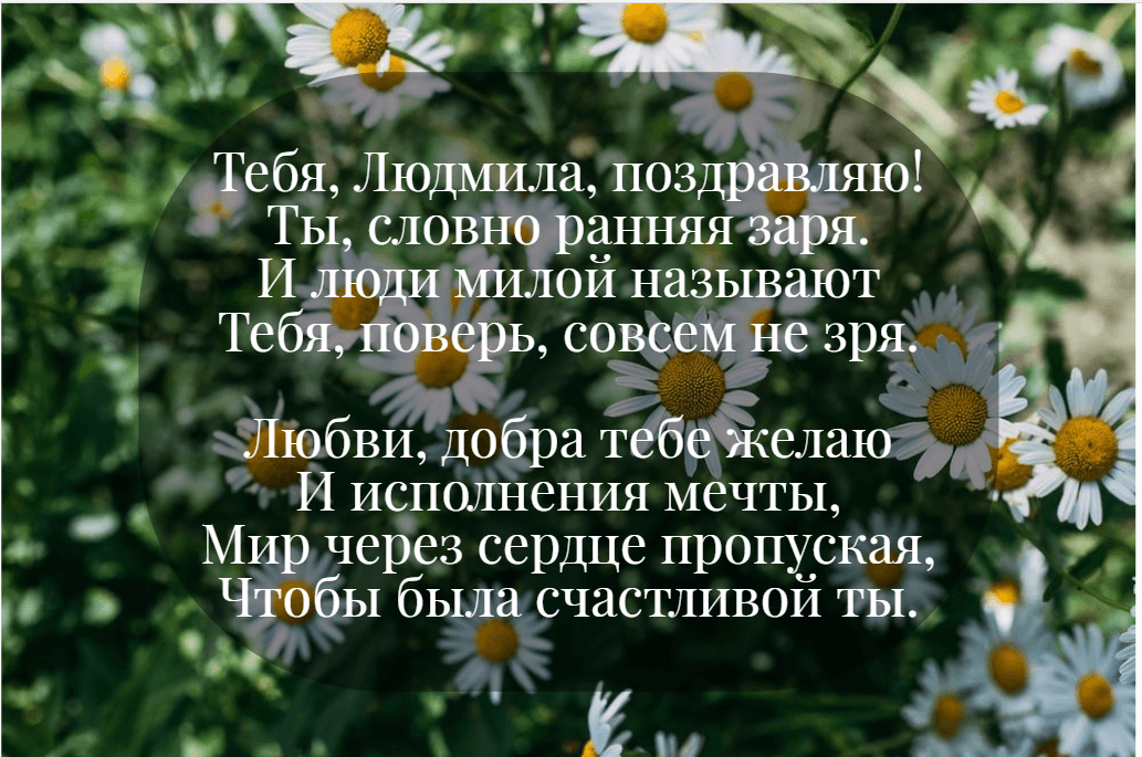 Людмила, с твоим Днем ангела! Я хочу, чтобы стало оберегом твоим небо, чтобы каждый день ты находила что-то прекрасное. Пусть добро будет вокруг тебя витать и садиться тебе на ладони. Будь счастлива!