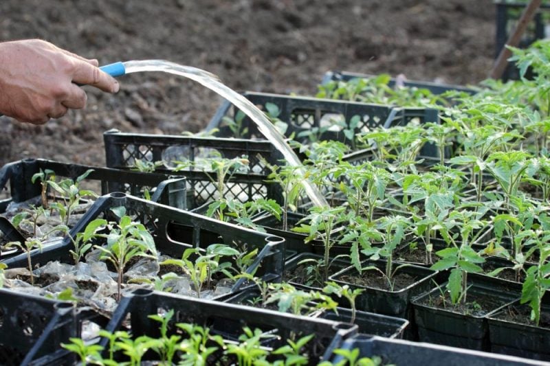 Когда удобрять помидоры после пикировки пришло время, помните, что процедуру можно проводить только по влажному грунту. То есть сначала мы поливаем грунт обычной теплой водой, а уже потом вносим питательную смесь.