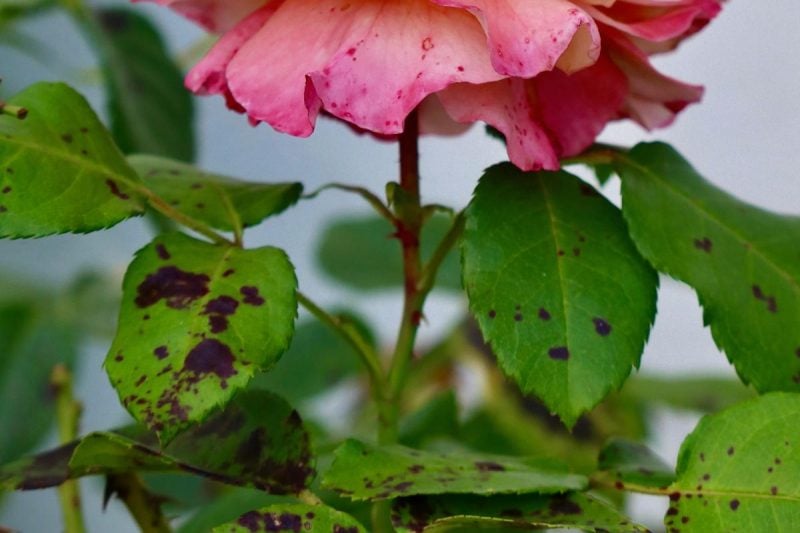 Черная пятнистость - одна из самых частых проблем у роз, с которой садоводы не могут справиться годами. Это заболевание вызывает грибок Diplocarpon rosae: сначала появляются темные пятна на листьях, затем они желтеют и опадают раньше времени. Розовые кусты из-за этого теряют силу и выглядят намного хуже.