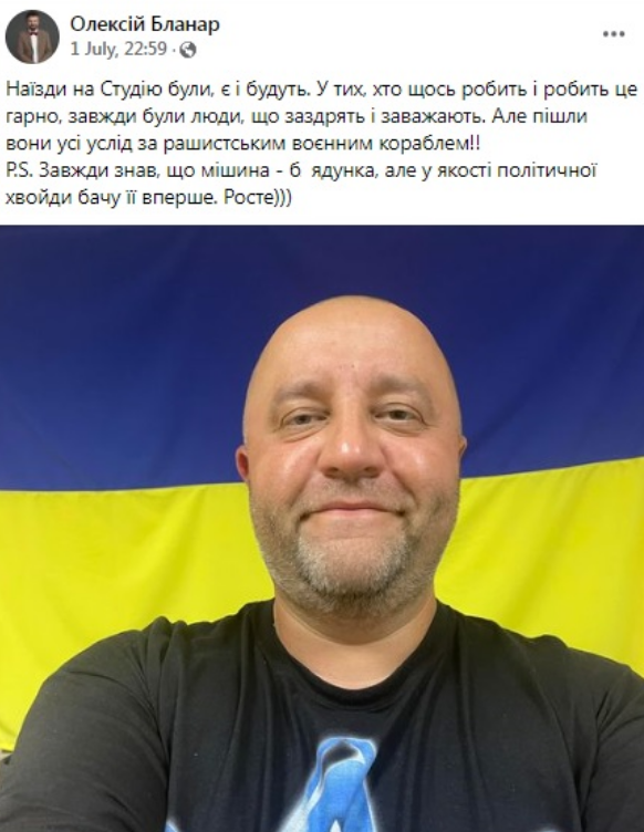 Руководитель проекта Алексей Бланар в ответ Мишиной заявил: "Всегда знал, что Мишина – бл*дунка, но в качестве политической проститутки вижу ее впервые".