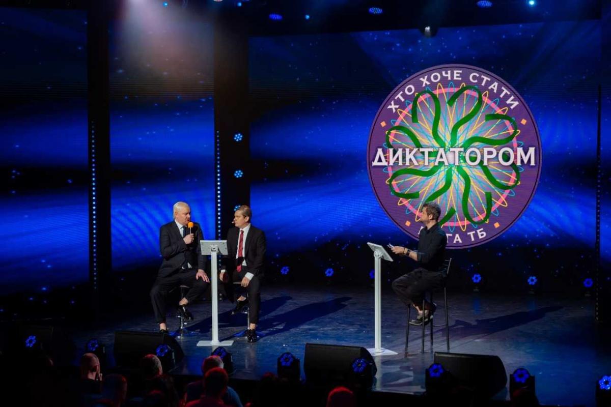 Также юмористы покажут новое шоу на телеканале "Гаага ТВ" – "Кто хочет стать диктатором?", главными героями которого были Владимир Путин и Александр Лукашенко. Ведущий - Юрий Крапов, в роли диктаторов – Евгений Кошевой и Степан Казанин.