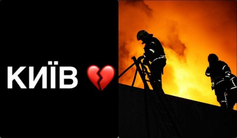 Украинские актеры Ольга Сумская и Тарас Цымбалюк опубликовали кадры с последствиями циничного удара России по Киеву, а певица Наталья Молилевская в stories написала "Киев" на черном фоне и добавила эмодзи разбитого сердечка.