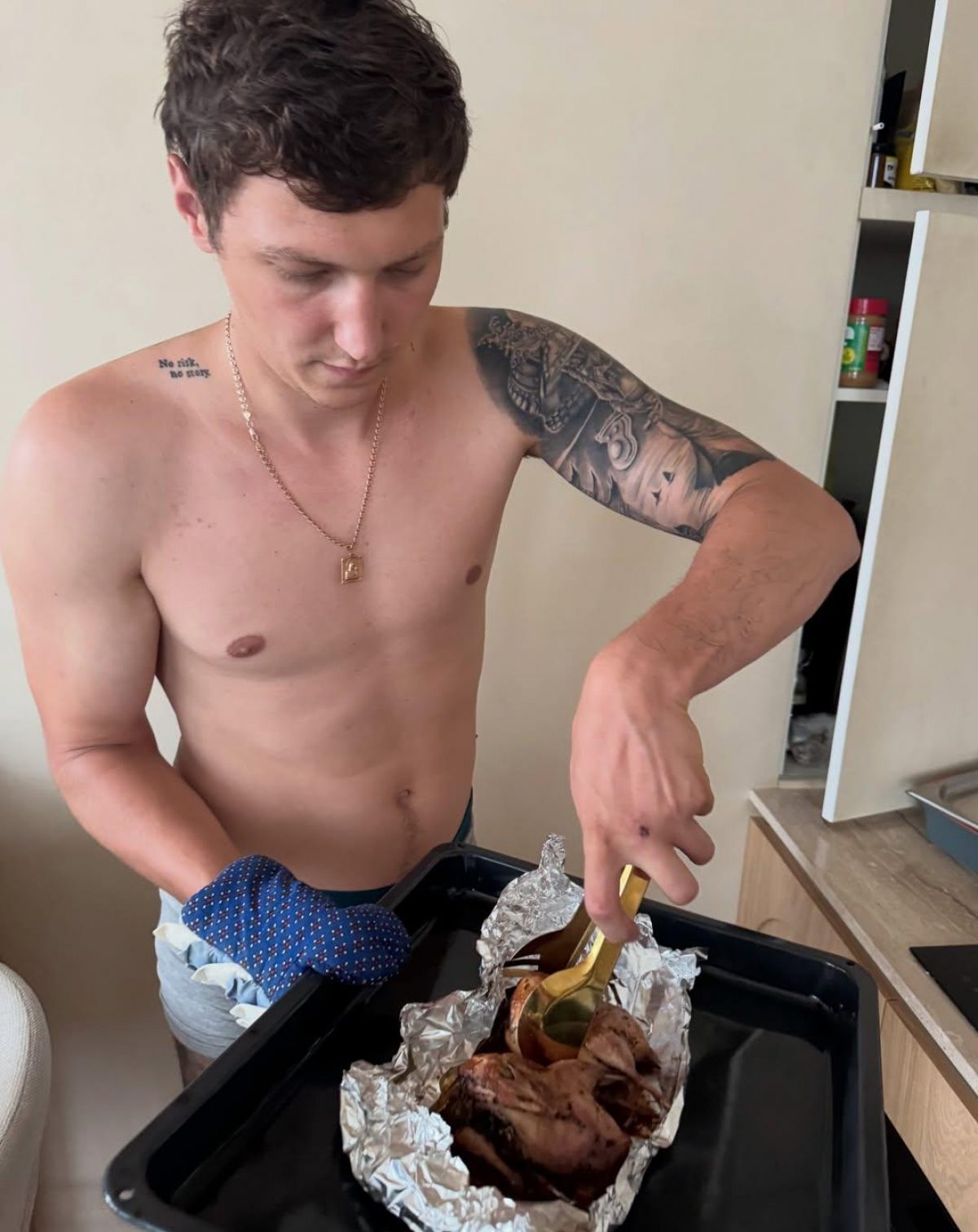 Утром военнослужащий опубликовал в своем Instagram-аккаунте подборку снимков, на которых можно увидеть Лесю с их маленьким сыном Оскаром, самого Бабчука с едой, а также трогательное селфи пары с собакой. Кроме того, в подборке немало фото со службы мужчины.