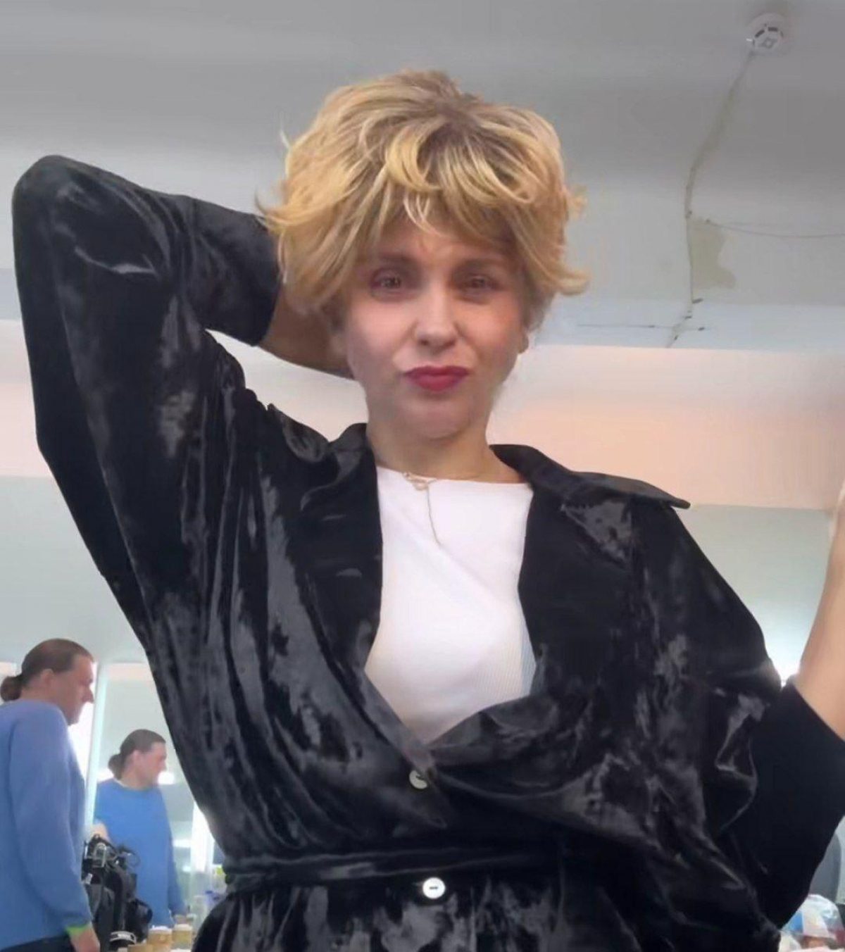 Ребрик добавила, что перед тем, как выбрать окончательный парик для сцены, перемерила множество вариантов - от светлых до темных и даже седых волос. Почти все прически были короткими.