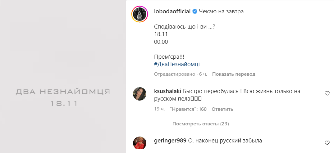Так, знаменитость 18 ноября планирует презентовать песню на украинском языке "Два незнайомця". Однако в названии есть ошибка, на которую и указал Авраменко.