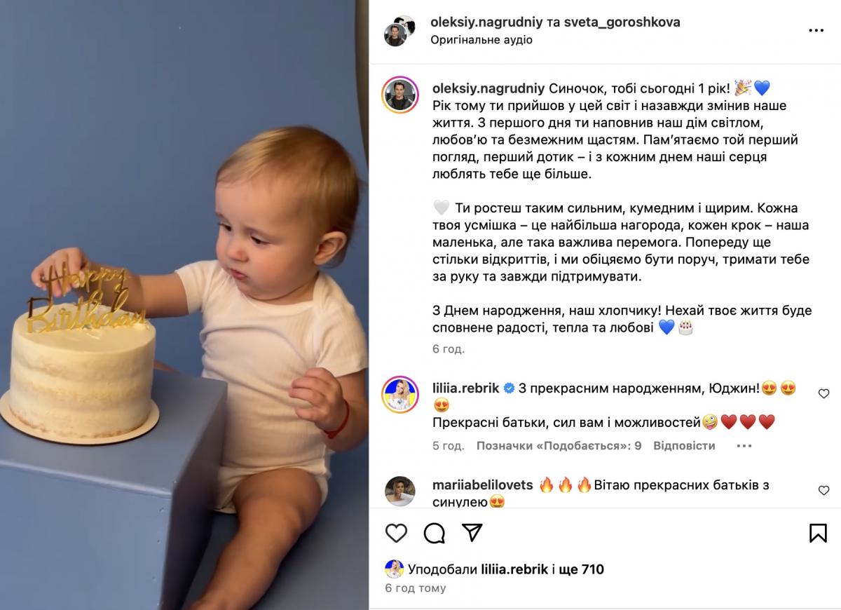 На кадрах Евгений позирует на камеру с праздничным тортом в рубашке и классических штанишках, а также играет в ванной. Рядом с ним на некоторых кадрах был его звездный папа. В подписи к видео Нагрудный оставил трогательное поздравление для малыша и рассказал, как изменилась его жизнь с появлением ребенка.